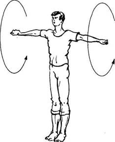 Круговые движения плечами вперед. Выполняются одновременно обоими плечами.