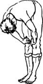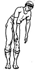 В этом упражнении туловище после каждого наклона не доходит до прямого положения, выпрямляется лишь слегка. Оно полностью выпрямляется только во время паузы (отдыха).
