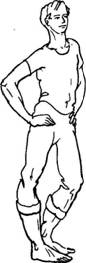 Руки в локтях не сгибать, они должны быть все время прямыми. Рука, поднятая до отказа вверх, может слегка касаться уха, а та, которая опущена вниз,— слегка прижиматься к бедру.