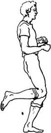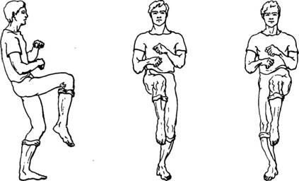 Сердечникам, астматикам, гипертоникам да и просто пожилым людям высоко (до уровня живота) поднимать колени не рекомендуется. Поднимайте их чуть-чуть, будто слегка пританцовываете на одном месте. Помните: в момент короткого шумного вдоха нужно невысоко приподнять одно колено, при этом на другой ноге слегка присесть, как бы танцуя рок-н-ролл.