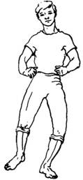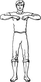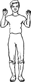 Исходное положение: встать прямо, сжатые в кулаки кисти рук прижать к поясу.