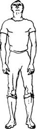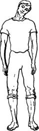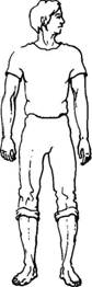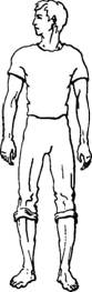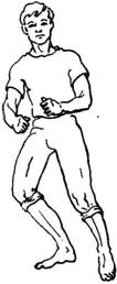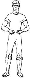 Руки либо висят вдоль туловища, либо кисти рук делают легкое встречное движение на уровне пояса.