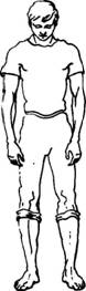 Исходное положение: встать прямо, руки опущены. Слегка наклонитесь вниз, к полу: спина круглая (а не прямая), голова опущена (смотрит вниз, в пол, шею не тянуть и не напрягать, руки опущены вниз). Сделайте короткий шумный вдох в конечной точке поклона («понюхайте пол»).