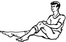 Исходное положение: сидя на полу, ноги согнуты в коленях, руки согнуты в локтях, кисти свободно лежат на коленях (правая на правом колене, левая - на левом), туловище расслаблено. На счет "раз" приподнять правую ягодицу и толчком послать вперед правую ногу, как бы делая ею шаг (при этом правая нога выпрямляется в колене). Одновременно выдвинуть вперед правое плечо и сделать шумный короткий вдох. Затем на пассивном выдохе не спеша выпрямить туловище, опустить ягодицу на пол, согнуть в колене правую ногу и сразу же, без остановки, сделать аналогичный шаг левой ногой, выдвинув вперед левое плечо.